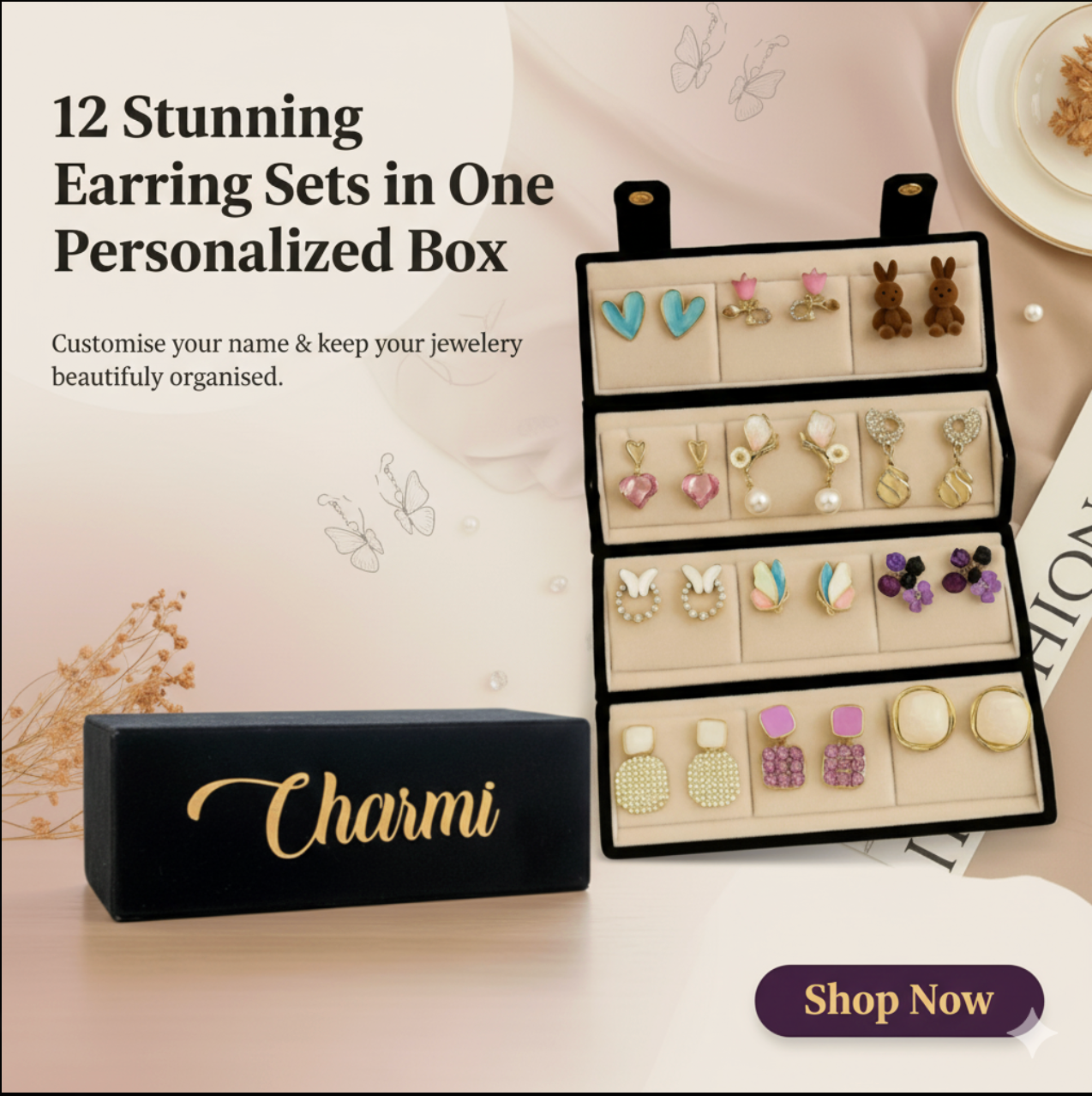 Personalised Earring Folding Gift Box (comes with set of 12 earrings)