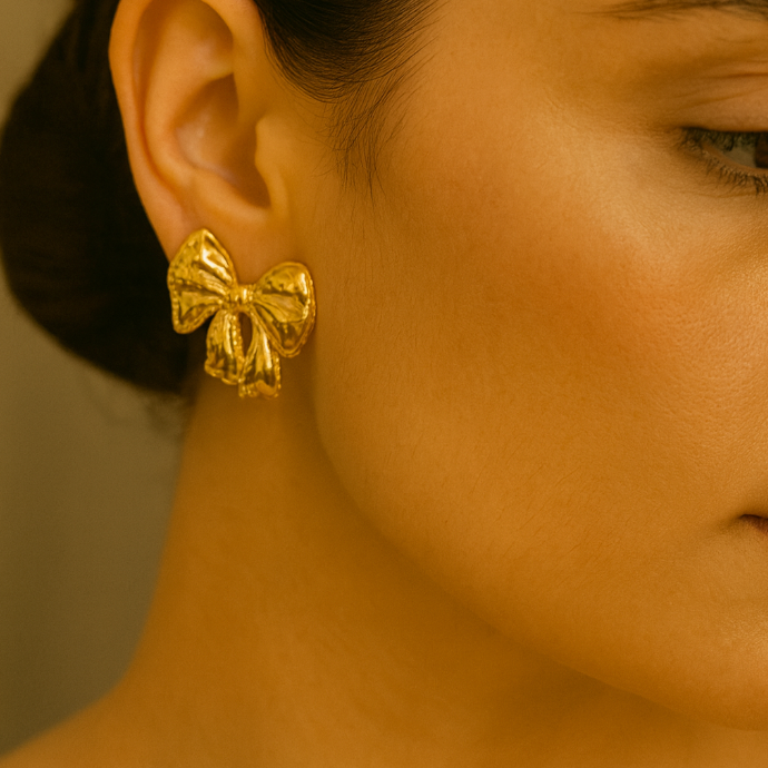 Turn everyday moments into occasions with our Eternal Bow Earrings. Designed with a soft, romantic bow shape and intricate ribbon detailing, these earrings blend elegance with timeless femininity. The lustrous gold finish makes them perfect for pairing with both chic daywear and glamorous evening outfits.