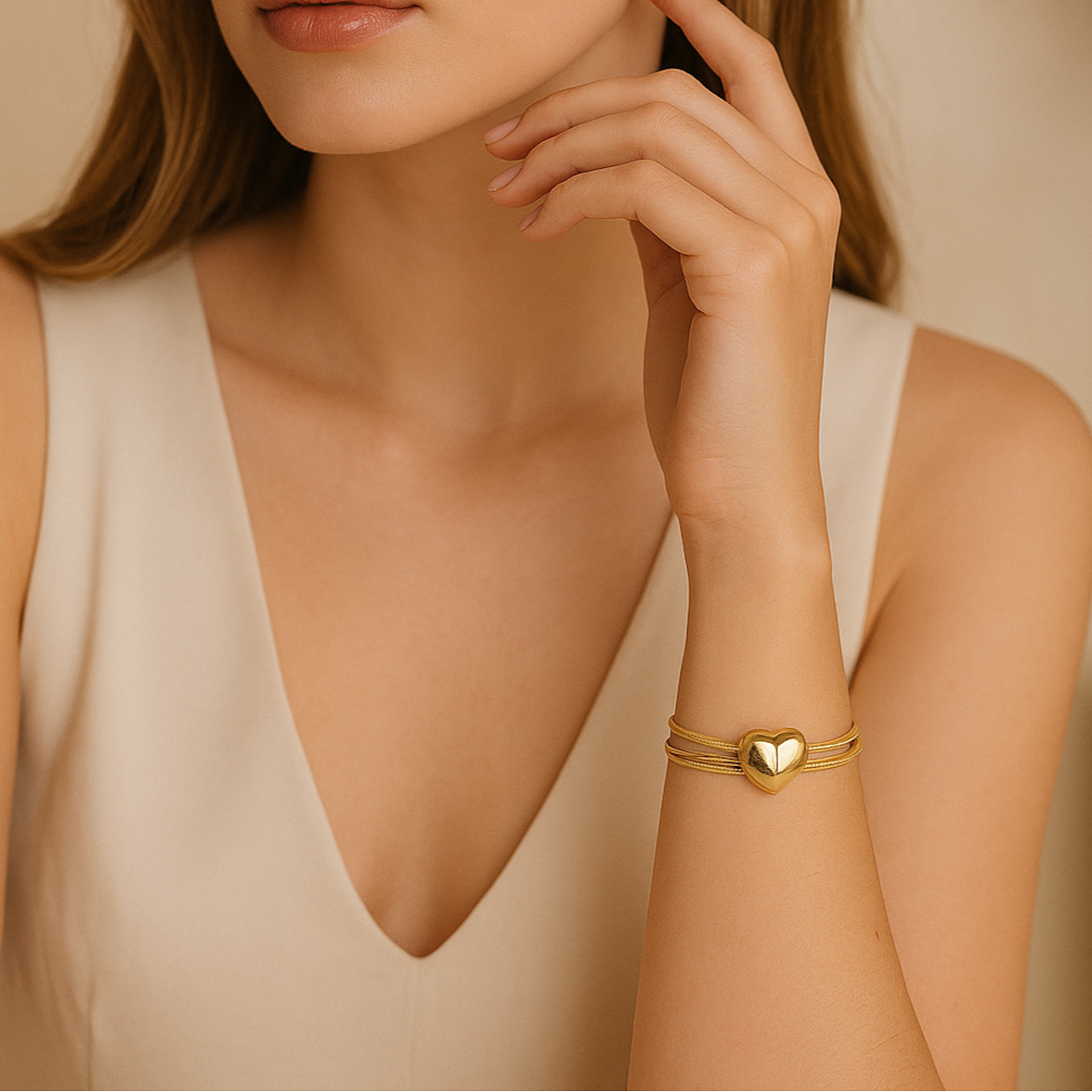 • Design: Magnetic heart pendant with multi-strand gold chains